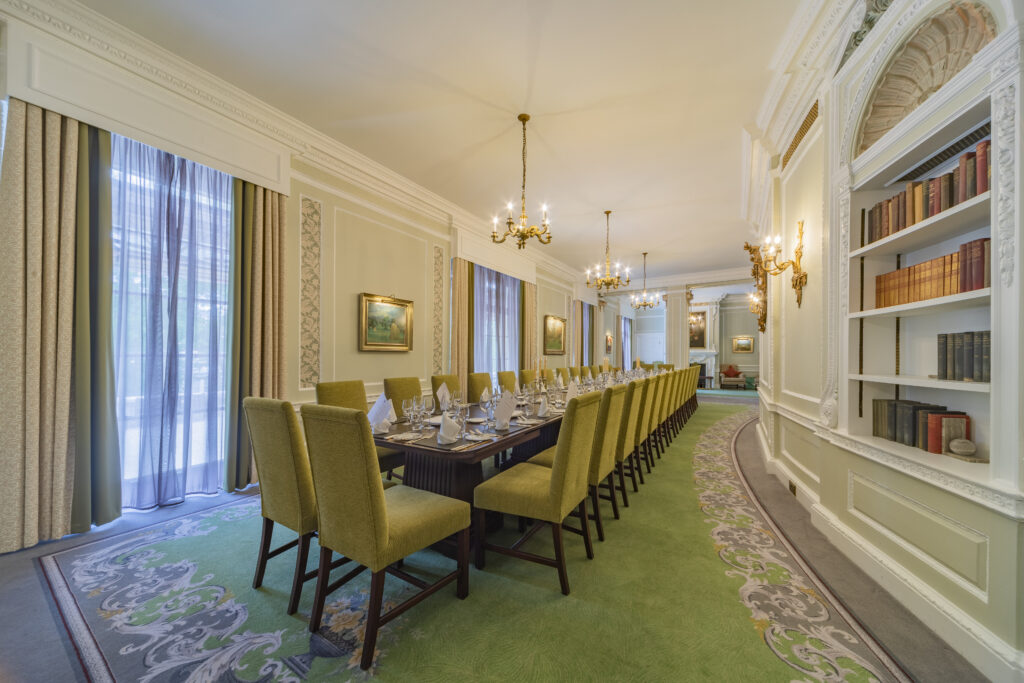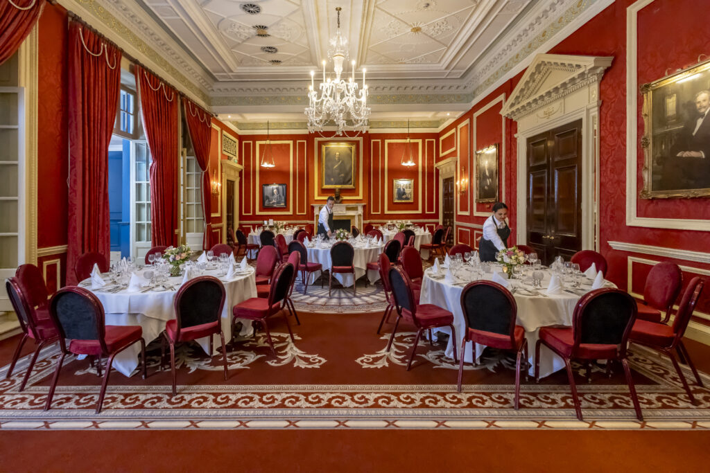 For smaller ceremonies, the Terrace Room provides an intimate space for up to 50 guests. With floor to ceiling windows offering an abundance of light, guests can enjoy the comforts of this striking room, or step out onto the terrace and enjoy the stunning view of Carlton Gardens with St James’s Park beyond. A rare peaceful central London spot with views of the Houses of Parliament, Westminster Abbey and the Tower of Westminster Cathedral.