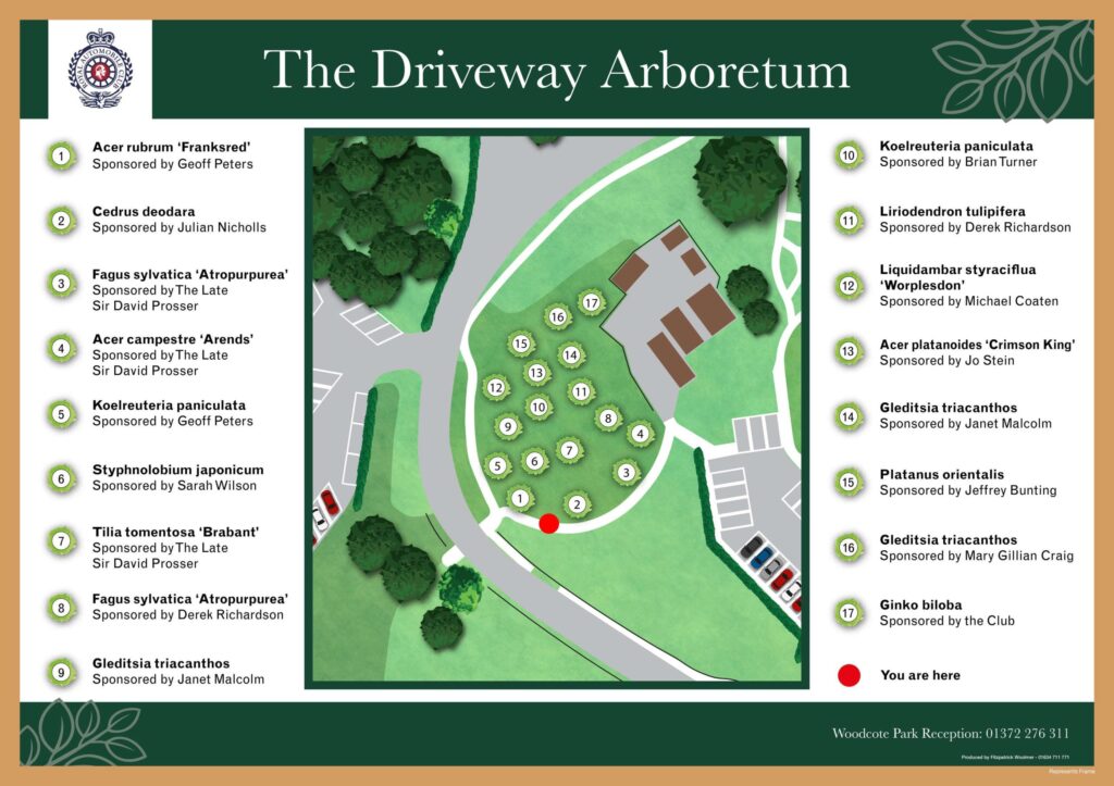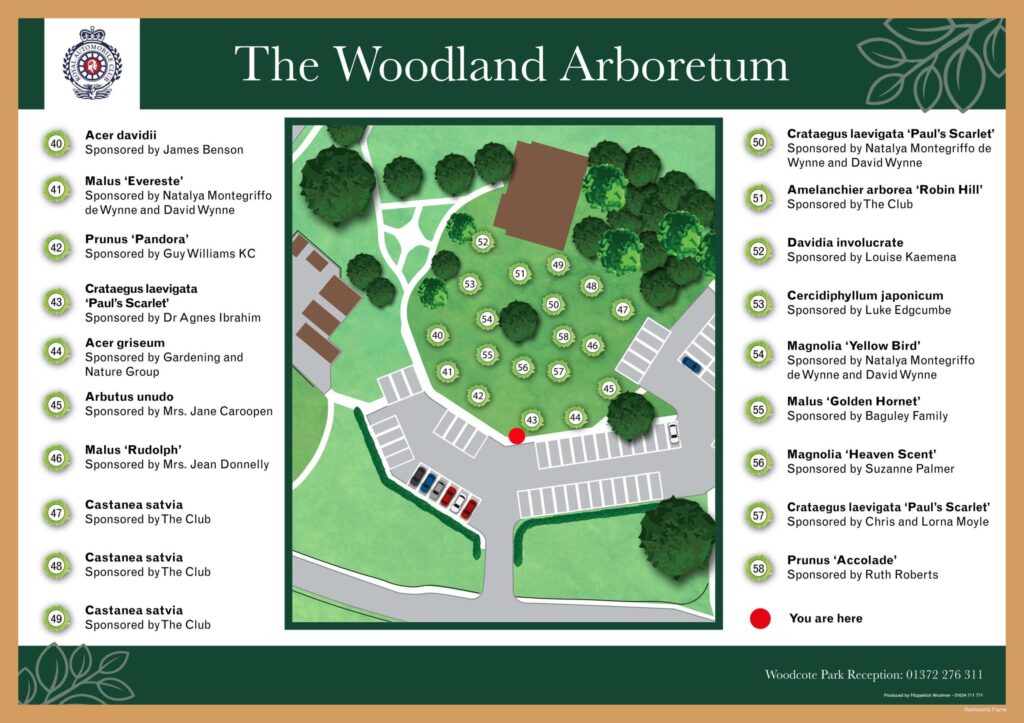The new arboretum is in a highly visible and very accessible area either side of the main drive near the lake and the Woodland car park. This is the main car park for the Walled Garden and Cedars Sports.